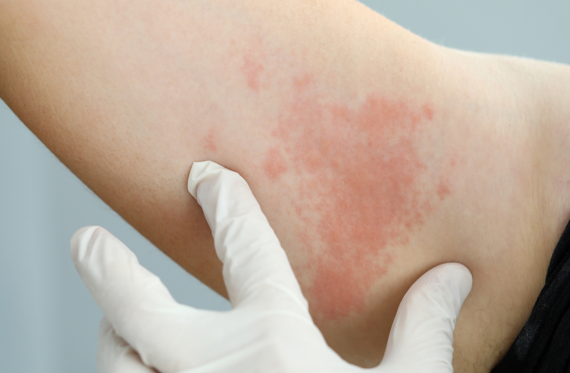 대상포진 초기증상 중 가장 대표적인 증상으로 수포 및 발진은 바늘로 찌르는 듯한 날카로운 통증이 동반될 수 있습니다. 보통 감기 증상이 나타난 시점에서 2~3일 가량 경과 했을 때부터 물집 및 발진이 바이러스가 침투한 지각신경분포를 따라서 띠 모양으로 나타납니다.