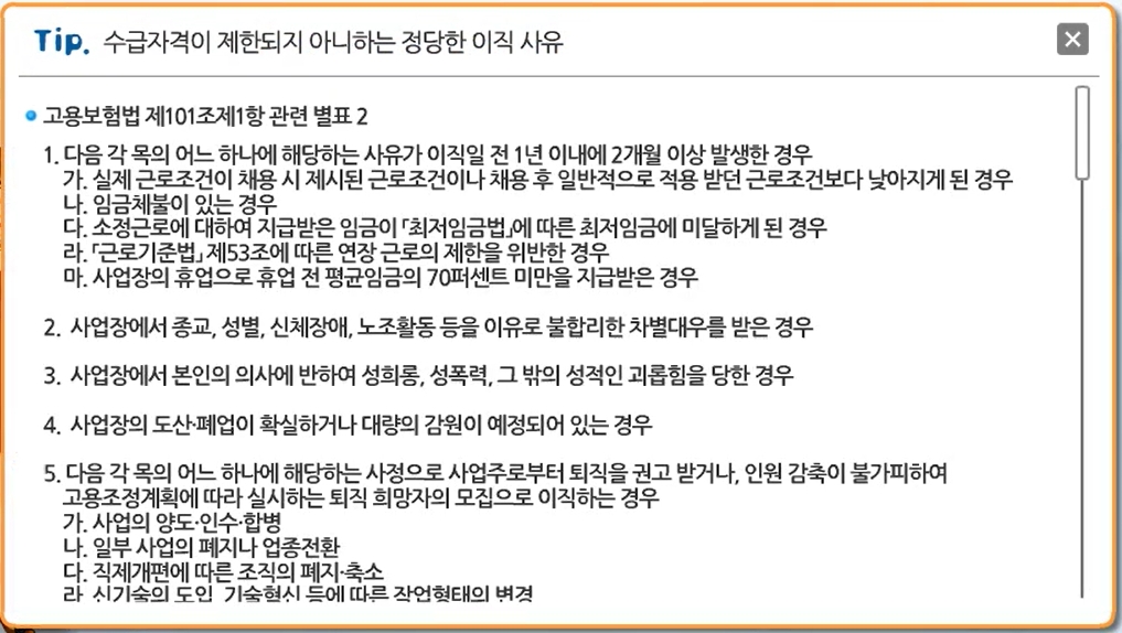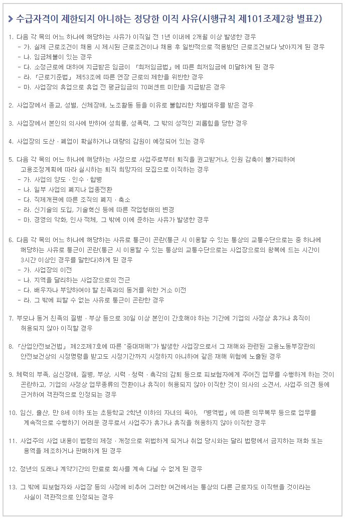 4. 이직 사유가 법 제58조에 따른 수급자격의 제한사유에 해당되지 않는, 자의가 아닌 비자발적 사유