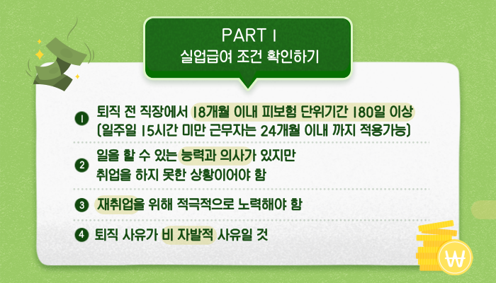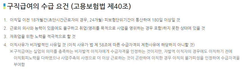 1. 이직일 이전 18개월간 피보험기간이 총 180일 이상이어야 해요. 초단 근로자의 경우는 24개월