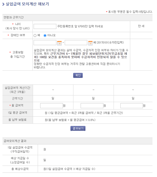 실업급여 모의계산